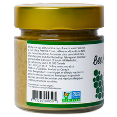 Made by NutraBee™, purveyors of Pure Gourmet Honey Products, this product is available in single jars of 350 g/12.35 oz. Serving size, 1 teaspoon (10 g). Servings per jar, 35.
