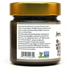 Nutrient and antioxidant rich black seed contains three key natural phytonutrients that include thymoqinone to help boost immunity. The phyonutrients in black seed contain natural anti-inflammatory properties to promote a healthier immune system. Combined with organic honey that contains contains B-complex and C vitamins, and minerals (potassium, calcium) makes Immuno Bee Honey+ a real powerhouse food.